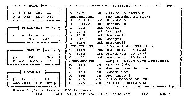 Met F8 tenslotte kunt u de COM poort instellen, de offset frequentie voor CW