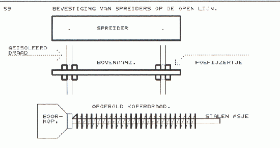 geisoleerde draden van de voedingslijn komen te lopen. Vervolgens de spreiders