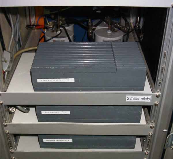 grotere 19-inch kast geplaatst, waar behalve de relaiszenders op 70cm en 23cm