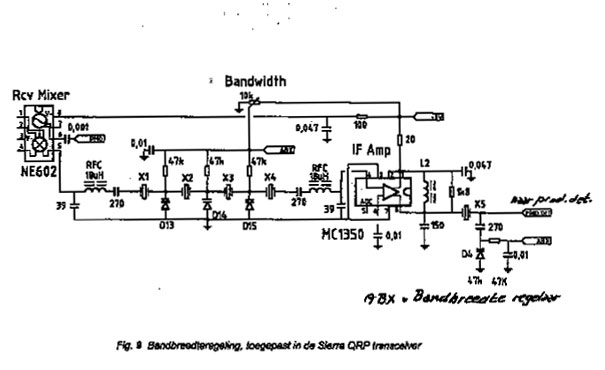 een Sierra QRP tranceiver. Hier zijn de condensatoren vervangen door varicaps