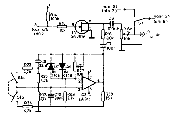 naar potmeter R16a van maximum tot vrijwel nul worden gevarieerd. De FET