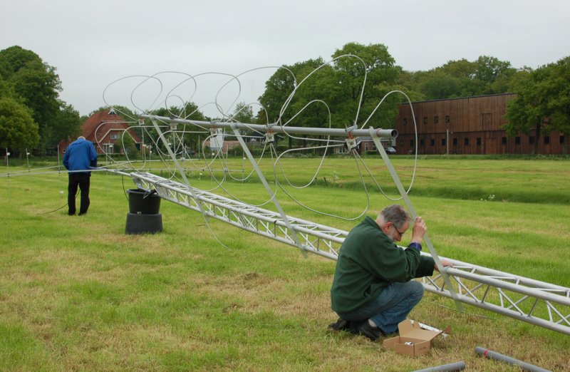 Voet bij stuk houden met hulpmast voor het optrekken