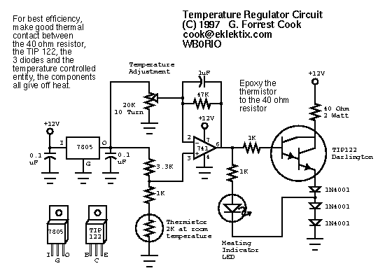 componenten, die de warmte opwekken (de weerstand van 40 Ohm, de TIP122 en de 3