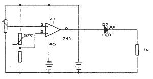 kant, dan gaat de led branden, als de temperatuur van de NTC daalt. Deze