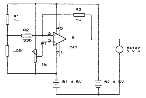 spanningsdeler tussen de meetspanning over de LDR en de uitgangsspanning.
