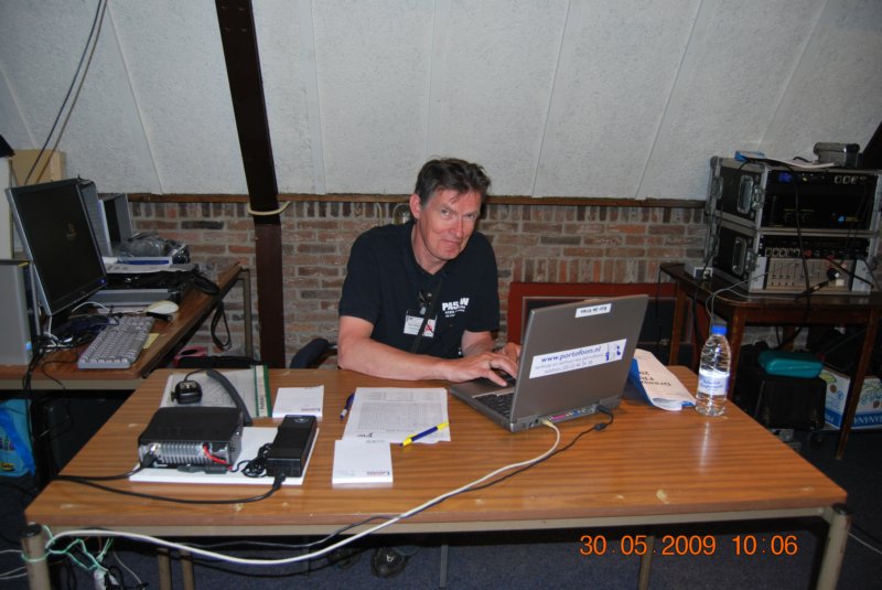 De info stand en QSL manager Simon - PA7SB staat een adspirant lid te woord !