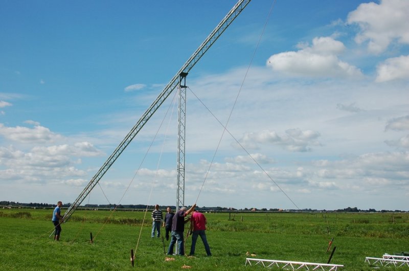 Experiment: een hulpmast van 2 stuks 3m truss plaatsen